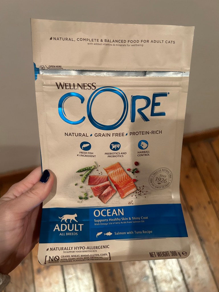 Sushi e Panterino hanno provato per voi i croccantini Grain Free per gatti adulti del marchio belga “Wellness Core“, comprati allo store Tom&co di Bruxelles.